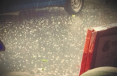 昨日下午5时左右,北三环附近下起冰雹。姜博瀚 摄