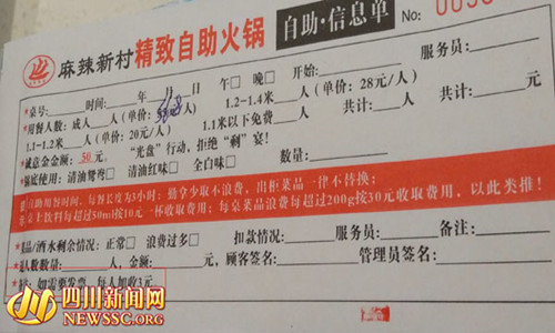 王先生告诉四川新闻网记者,日前他请朋友吃饭,选择了位于泸州主城区新马路的一家名为“麻辣新村”的火锅店消费。结账时王先生向店家索要发票,店家竟然提出客人需支付每人3元的“税款”。