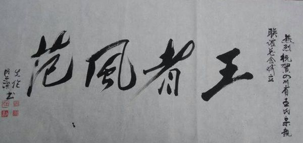 会议期间,来自全国各地的艺术家们也为大会献上了自己的作品,远在成都彭镇出席彭镇印象活动的泸州籍画家王明藻、毛体书法王先伦也专门共同为大会题写了“王者风范”的书法作品。(