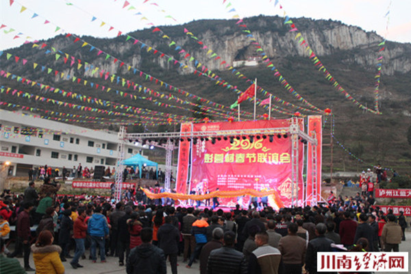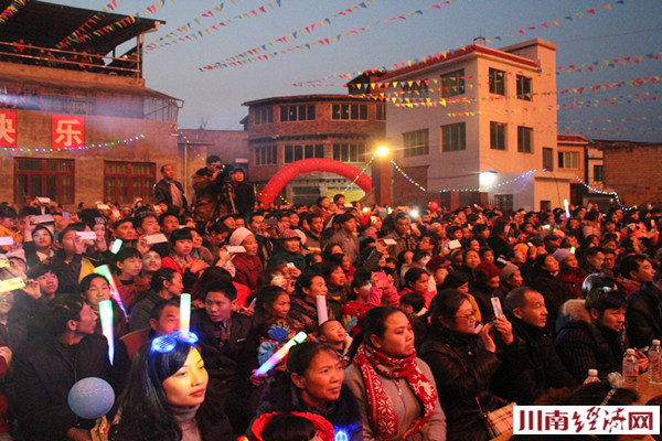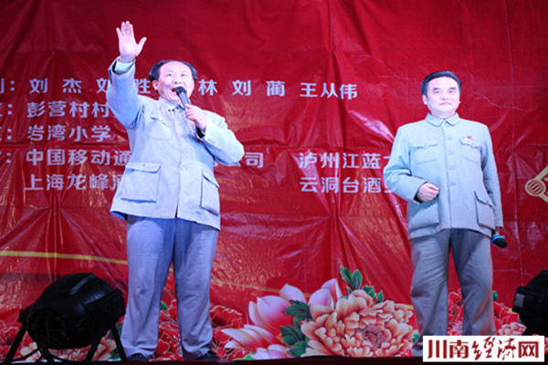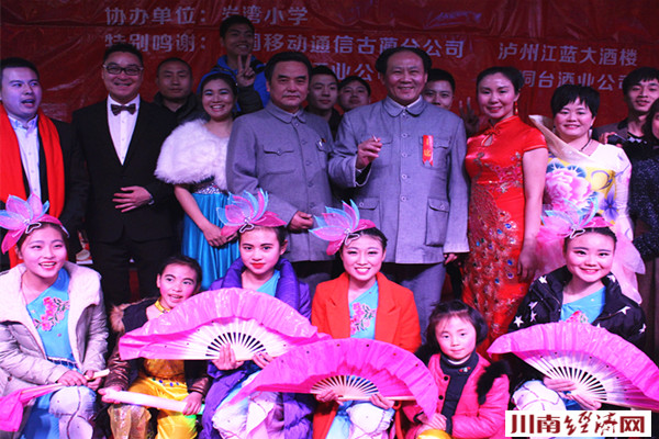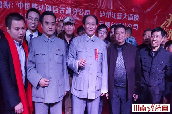 川南经济网古蔺讯(初旭 文/图)2月9日(农历正月初二)晚,川黔交界的四川泸州古蔺县丹桂镇的彭营村场上,人头攒动,嘉宾云集,由当地村民委员会自主创办的古蔺县首届农民春晚——丹桂镇彭营村春节联谊会在这里隆重举行,"毛主席"特型演员缪世璇、"周总理"特型演员罗永祥亲临助阵,为当地村民送”福“。