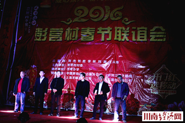 为支持彭营村群众自娱自乐欢度新春佳节,古蔺丹桂镇党委政府也给与了大力支持。据介绍,此次晚会是由丹桂镇彭营村委主办,岩湾小学协办的。同时,晚会还得到了中国移动通信古蔺分公司、泸州江蓝大酒楼、上海龙峰酒业公司、四川云洞台酒业公司的鼎力支持,在此一并鸣谢。