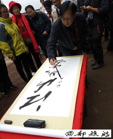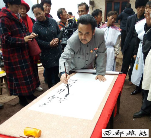 周恩来总理特型演员罗永祥老师、毛体书法家王先伦老师见证挂牌仪式。“各位父老乡亲,我代表国务院来看你们了”,“周总理”用洪亮而温和的声音向乡亲们问候,并为乡亲们题词,毛体书法家王先伦老师也现身为嘉宾书画留念。