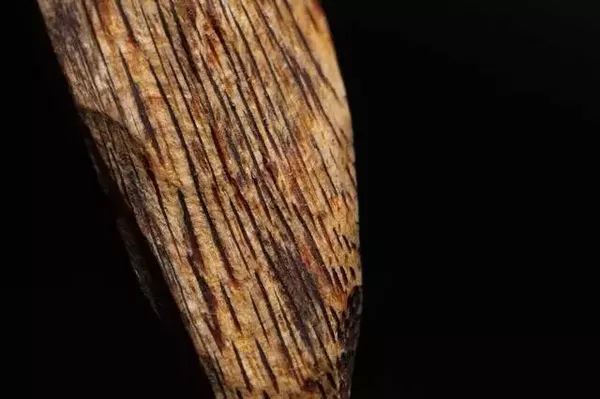 除奇楠外,海南最好的沉香便是“黑油格”与“黄油格”。在海南黎语里,“格”的意思是木材的芯部,也是结香品质最好的部位。黑油格色泽基本为黑褐色,斑纹呈不规则片状或团状,毛孔为点状,同时,油线分布也很均匀、条理清晰,与其他产区沉香有明显区别,非常漂亮。
