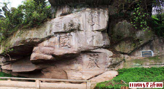 护国岩位于沪州市纳溪区大洲驿永宁河东岸,距城 30公里。1916年1月袁世凯窃国,复辟帝制,蔡锷在云南组织护国军入川,叙沪之役,出奇制胜,是年7月在绝壁上刻“护国岩”三字以为纪念。每字方1米。其下勒石286个字,字大10厘米,略谓“民国四年,前总统袁世凯叛国称帝,国人恶之。滇始兴师致讨,是曰护国军。锷实董率之,逾军师次蜀南,与袁军遇于纳溪,血战弥月,还军大洲驿,盖将休兵以图再举”云云。文末署“蔡锷题,殷承献书,民国五年七月勒书”等字。
