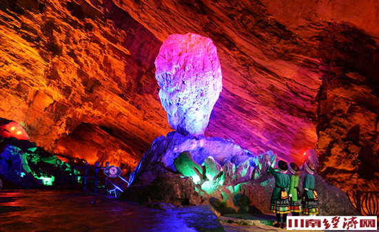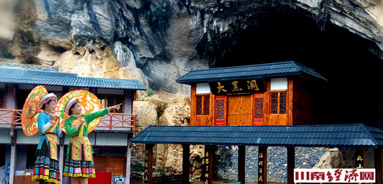 特别有名的是大黑洞,这是独步泸州的最大溶洞。大黑洞在团结村境内的大坑头山中,是一喀斯特天坑。沿321国道顺着一条狭窄的小路而下,山上林子四面环绕状,至中间集体下凹,大黑洞的入口就在那最深的凹口间,好似一个半张的大口。洞深约5公里,冬暖夏凉。入到里面,起初感觉阴冷潮湿,越往里走,越觉温暖。举目洞内叉路繁多,令人不由得又倒抽了一口冷气。洞内路时而直上,时而又急下。入洞约200米处,有两个开阔地,左边一个差不多有5个篮球场大,右边一个比10个篮球场还大。开阔地边侧有一洞口向下,洞内阴河曲径通幽,行约3公里可达乌龙沟凉风洞。由此前行约一公里,可通往天坑东面的响水洞。相传此洞可通往云南、贵州,但至今无人探明究竟有多少个出口。洞中景观自是奇异,各种钟乳石造型稀奇古怪,千姿百态,又有暗河,水声淙淙,不知流向何处,说不尽的神秘诱人……其溶洞文化是古蔺乃至泸州一张名片,如今已然是国家级4A旅游景区。