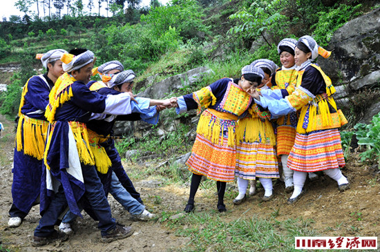 这是箭竹乡为箭竹统一设置的手机彩铃。这一时尚设置表明,让今天的箭竹能够笑傲川南的,除了自然风物,特别能够拿来张扬的就是具有苗族文化特色的“苗家风情节”。