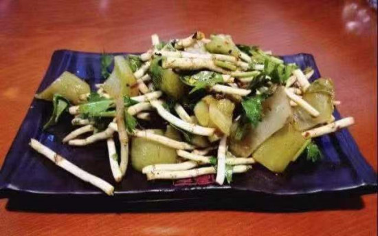 江湖有江湖规则,一条汉子要在江湖上扬名立万,就必须有自己的独门利器。酸菜当然是酸的,而它亮剑江湖靠的就是这酸味,这叫实至名归。只是这酸味的神奇,我至今也无法用语言说清楚。而能够用物理化学方式把这种酸味杀伤力说明白的人,现在还没有生出来。以我自己的经历来说,这酸味是酸在我的心头,酸在我的血液中。借用流行歌中的唱词表达就是,“只是因为在人群中多看了你一眼,再也忘不了你的容颜。”“冬天雪花飞舞有你, 更加温暖。”记得上小学二年级时的冬天,我重感冒发高烧,胃口不开,不思茶饭。外婆专门用猪大骨炖了汤给我做酸菜汤,汤里加了小豆,面上又撒了一把用柴火烤香的木姜花;还用柴火灰烧烤的糊海椒、山中的野葱、冬水田坎边的侧耳根合在一起,凉拌脆晶晶的酸菜杆。于是,方寸之间,麻、辣、香、鲜就在我面前欢聚一堂。喉咙里早伸出七八只手来,两碗饭愉快下肚,一身汗水如“林间小溪水潺潺”。第二天一早,我就哼着“小呀么小儿郞,背着书包上学堂——”三步并着两步,踏上了“书中自有千钟粟,书中自有颜如玉,书中只有黄金屋”的康庄大道。