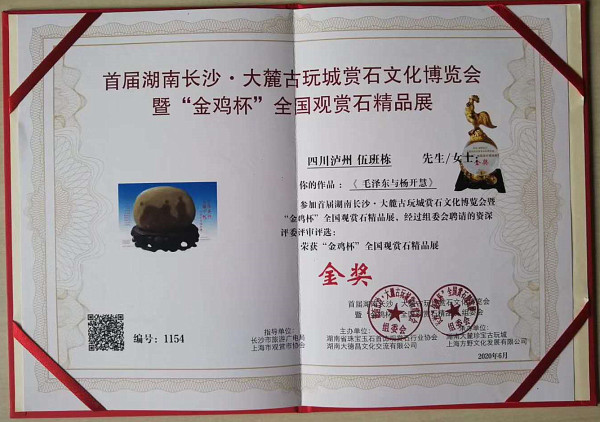 西部旅游网讯(初旭)最近,首届湖南长沙.大麓古玩城赏石文化博览会暨“金鸡杯”全国观赏石精品展在长沙举行。四川泸州奇石爱好者伍班栋先生送展的长江奇石画面石《毛泽东与杨开慧》喜获金奖。