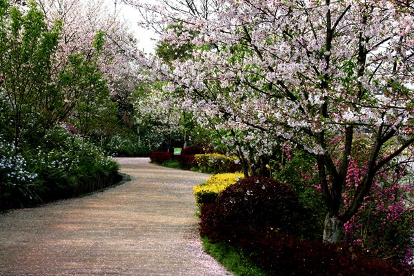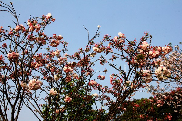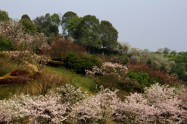 三年多时间过去了,袁钢为爱妻而打造的“丹林樱花谷”终于初具规模。六百多亩的樱花谷,二十多个樱花品类应有尽有。从农历的正月初一,就有早樱吐露枝头。中国红、初美人、香水樱、牡丹樱、阳光樱、红粉佳人,点染着乡村的二三月。染井吉野、江户彼岸、就像少女多变的小心思,时而粉红、时而纯白、时而浸色,把个山野装点得淡红雅香,羽蝶共舞。普贤象、红绯樱、关山樱,她们是樱花中最迟开放的品种,任由百花盛开,她们总是按兵不动,一出场就成为大自然的主角,演绎一场樱花的压柱大戏,开到最后,笑到最后。樱花谷,近郊游的好去处,一个独具魅力的网红打卡地。