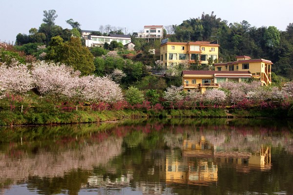 走过雪山,流过草地,万里长江从十万大山间奔涌而来,在川南富庶的土地上,留下了连绵起伏的红丘陵,波浪一样扩展到天边的田野,还有那一座座放飞炊烟的村庄。就在当地江阳区的丹林镇,一个叫建设的村子,满山满谷的樱花,把村庄打扮得分外妖娆绚丽。那谷叫樱花谷,花谷的主人袁钢和王小萍,是一对中年夫妻,人称“神雕侠侣”,他们用自己的情怀写下了乡村最美好的爱情。