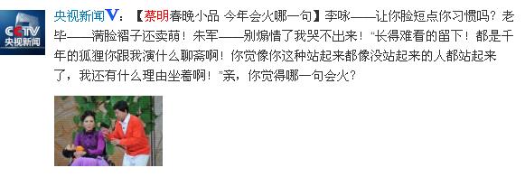 对于蔡明的小品,网友纷纷给予肯定,连不少名人也纷纷发微薄支持。
