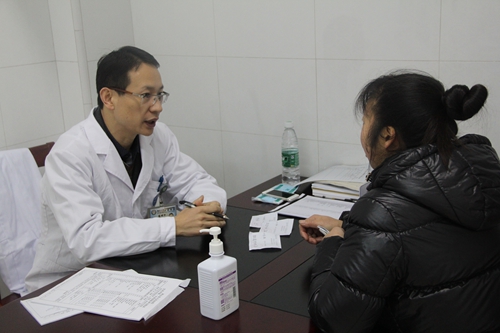 华西医院胆道外科、副主任医师陈利平正在为患者诊治