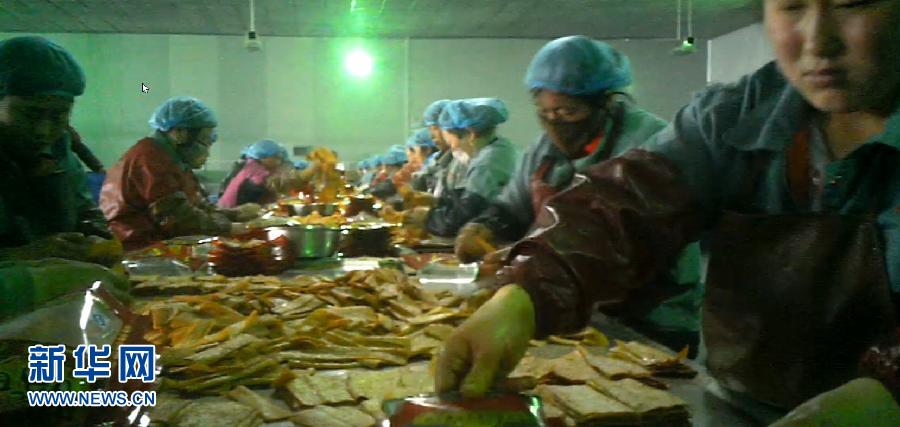 “辣条”,最近被网民称为“史上最牛零食”。这种袋装小食品看似不起眼,却出现在几乎所有菜市场、小卖部的货架上,在网店里也卖得十分火爆,甚至已开始走向国际市场。其消费群体数以百万计,主体是各地中小学生、农村留守儿童。人们不禁担心,“辣条”卫生吗?图为位于河南省通许县工业园的开封劲松食品有限公司生产厂房内,几乎没有人佩戴口罩和手套,上完厕所的女工手都没洗就回到工位上,直接用手将辣条一块块装入包装袋。(3月7日摄 视频截图)。来源:新华网