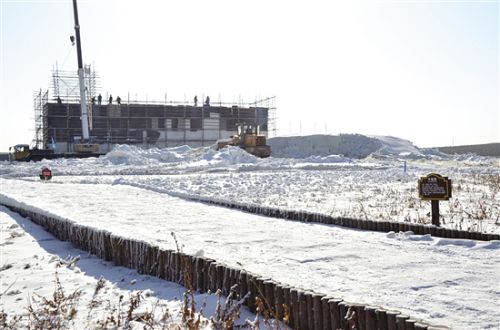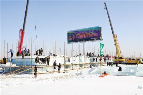 一座大型雪雕的主体结构已搭起