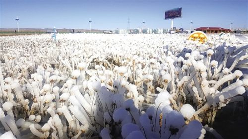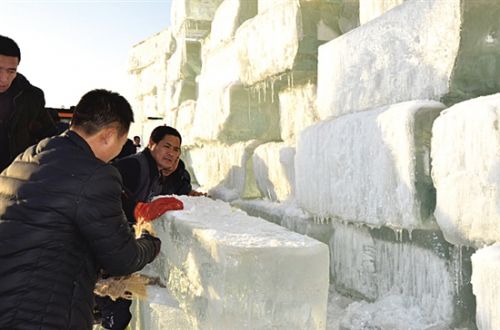 随着包头市首届冰雪文化旅游节暨固阳“梅令花海”冰雪灯光艺术游园会临近,已经变成冰雪世界的“梅令花海”打破了往日的寂静,人工造雪、制冰,切割冰块、按照设计图造型,正在紧锣密鼓施工的现场一派热火朝天的景象。