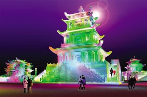 中国传统园林建筑造型的冰雕设计图
