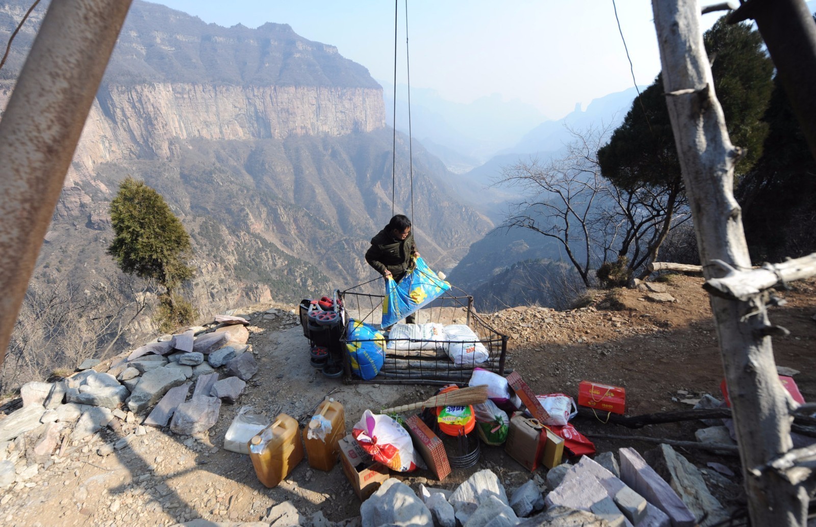 2017年2月12日,山西晋城。“抱犊村真难走,猴子过来都发愁”这是流传于山西省晋城市陵川县古郊乡的一句谚语。抱犊村,一个只有9户人家的小村落,这里是山西省唯一一个不通公路的村庄。要进入村庄需要跋山涉水徒步4小时才能到达,而村民的生活所需均需依靠悬崖边的一根钢索从山下吊运,山路艰险的抱犊村吸引了国内外广大户外运动爱好者的青睐,近年来生意爆棚的农家乐也让村民们的腰包鼓了起来。