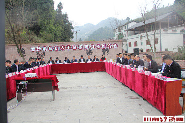 川南经济网讯 (杨慧萍 初旭)古蔺县总商会成都商会会长王永杰、名誉会长鄢永强,执行会长陈大强,决策执行委员会主任何开宏等商会代表共15人一行应邀参加出席了以“田园花镇,画里乡村“为主题的双沙镇2018年招商引资推介会,推介会在该镇白马村幸福广场举行,由古蔺县双沙镇党委,镇政府主办。