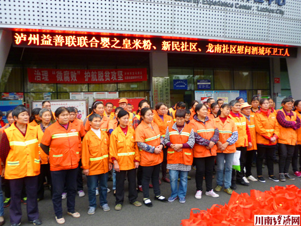 川南经济网(陈锡烈)15日下午4时:30分,泸州“益善联”联合婴之皇米粉、新民社区、龙南社区慰问酒城环卫工人活动,在奥林匹克体育公园旁的新民社区倾情上演。这是“爱满酒城·共享文明”为主题的“第二届关爱马路天使公益晚会”前奏曲,“益善联”负责人付宇彬、新民社区和龙南社区干部,以及100余名环卫工人和6位志愿者积极参加。