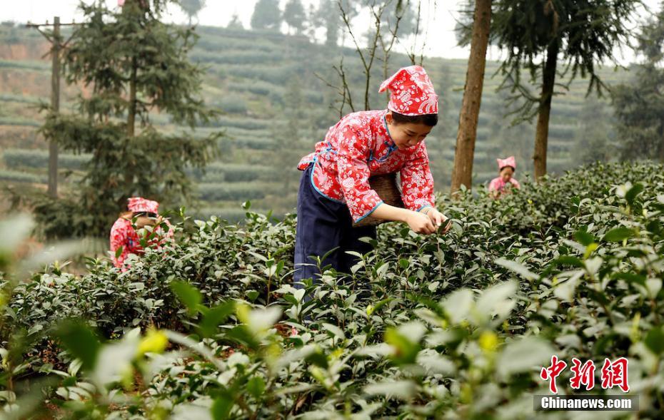 1月24日,四川泸州市纳溪区护国镇梅岭村“纳早1号”茶叶基地,采茶姑娘已经开始采摘特早茶新芽。近年来,泸州市纳溪区依托“凡能产茶之地,引进培育出全球同纬度最早茶叶品种——“纳早1号”,采摘期比原有早茶品种提前了10-15天。目前,纳溪区已经繁育“纳早1号”特早茶基地150余亩,投产面积近50亩,年产特早茶500斤。杨涛 摄