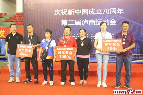 羽毛球男子单打冠亚军新蔺商代表队吴其召、新蔺商代表队代月、叙永县代表队胡传彬获得;羽毛球女子单打冠亚季军分别由龙马潭区代表队邓娟、万诚国际代表队杨小丽、新蔺商代表队何光琴获得;羽毛球男子双打冠亚军分别由叙水县代表队李臆枰与冯军、新商代表队马欣与胡国欢、新蔺商代表队吴其召与潘成刚获得;羽毛球女子双打冠亚季军分别由龙马潭区代表队邓娟与邱亚利、龙马潭区代表队夏丽平与刘成毅、叙永县代表队卢小群与杨瑞获得;羽毛球混合双打冠亚季军分别由新蔺商代表队吴其召与何光琴、叙永县代表队刘彪与李颖、新蔺商代表队马欣与罗叶获得。
