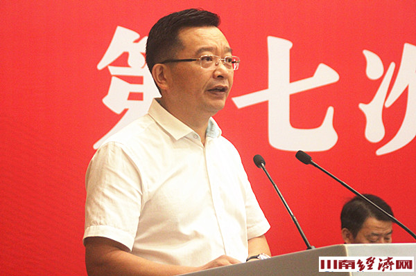川南经济网讯(初旭)9月11日下午,泸州市企业联合会、泸州市企业家协会(简称泸州市企联)在南苑会议中心召开泸州市企联第七次会员代表大会,暨“贺金秋·庆国庆”诗赋活动颁奖大会。出席会议的有:泸州市政府副市长付小平,四川省企联副会长兼秘书长梁勤,市企联顾问曹锡森(泸州市政府原老市长)、陈善强(泸州市委原副书记)、泸州市企联名誉会长张学焘、四川省扶贫基金会泸州分会会长伍福钊等领导和嘉宾,企业家及企业界朋友,共二百余人参加会议。