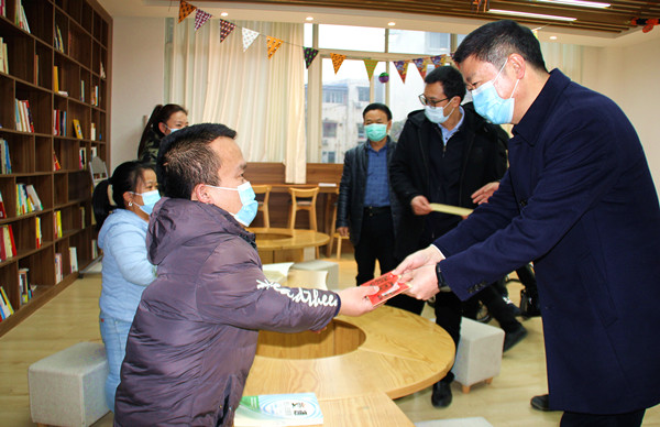 四川省残联理事长杨志远一行莅临泸州市圆梦关爱协会调研指导工作,参观了泸州市圆梦关爱协会志愿者活动室、图书室,并为现场4名残疾人代表送来新年的慰问和祝福。杨理事长一行专门听取了泸州市圆梦关爱协会会长陈西达有关协会工作的情况汇报,对协会一年来的工作给予了充分肯定,并希望在新的一年里,协会充分利用好现有资源,为残疾人服务好,再接再厉,创造出更加优异的成绩回馈社会。