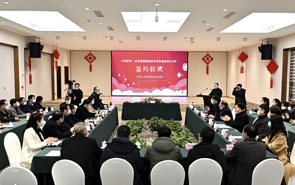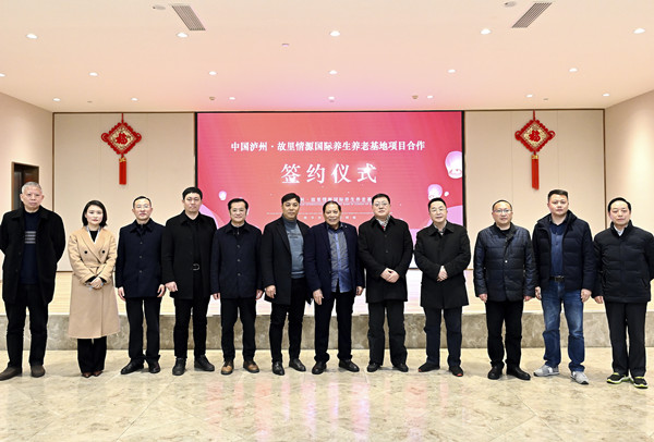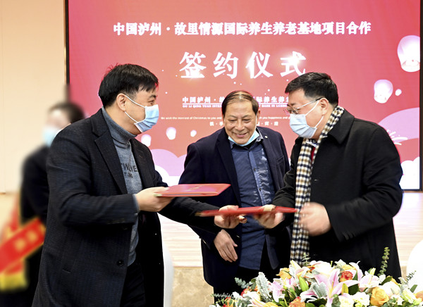 川南经济网讯(初旭)2月2日上午,中国.泸州故里情源国际养生养老基地投资合作签约仪式在纳溪泸天化宾馆举行。纳溪区人大詹中平主任、区政协熊杰主席、区委蔡宗炜副书记、区人民政府赵安清副区长及纳溪区民政局、国土局、住建局、区卫健委、泸州市乡贤会区老科协、区企业家协会、天仙镇人民政府等相关部门负责人出席仪式并见证签约。