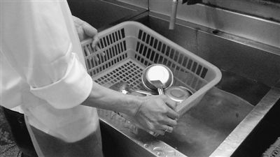 广药食堂员工在清洗提供小份菜的餐具。本报记者 贺林平摄
