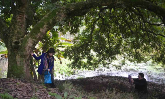 传说后湾村最古一株龙眼为明永乐二年,建文帝逃难到四川云龙寺穿上袈裟脱龙袍后,活动到后湾村所栽,距今约610年,无论从树龄长短、还是粗壮不空心、树干造型、树冠美艳、结果数量、果实味美、耐受灾害等方面,堪称后湾村“龙眼树王”,敢与泸州张坝树王决冠亚。此树一边陡坎下有田,地处馒头山下边。石板路边撑大伞,主人名叫徐怀全。徐氏祖宗在清代移民四川,插占落户泸县潮河后湾就拥有了它。此树在大坟包馒头山,因山嘴有几十座古墓而得名。此株龙眼古、大、美,经实地测量,树围2.9米,树冠直径20米,结果大小均匀,不淡嘴,清香,甜味相当纯正,树冠是一把大绿伞,主干分三叉,伸出许多小树干,宛若千手观音下凡尘,树形形特别美观。看着就不想走,大有不留影就决不离开的眷恋之情。