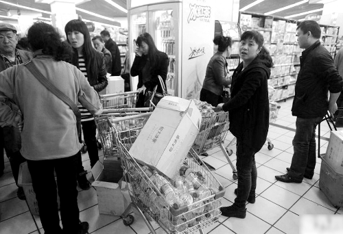 11日,兰州市城区唯一的供水企业——兰州威立雅水务集团公司出厂水及自流沟水样被检测出苯含量严重超标。当地政府称在24小时里自来水不宜饮用。市民抢购矿泉水,不少超市货架已空。