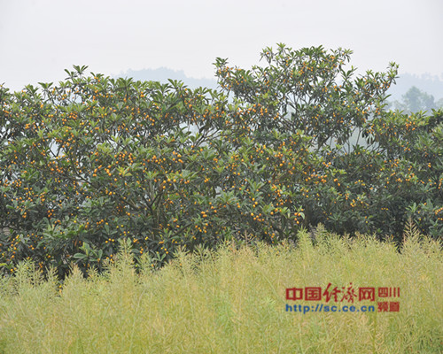 站在玉蟾山上,远远看去,灿烂金黄的枇杷如漫天繁星,密密麻麻缀满了漫山遍野的山丘。山上山下,一颗颗珠圆玉润饱满玲珑,一片片挂在绿油油的枝头,果香四溢。记者沿着山路向枇杷沟深处走去,棵棵枇杷树都挂满了果子,片片金黄点缀在绿叶之间,让人陶醉。剥开柔软的皮,果肉清新的芳香蹿入鼻腔,放进嘴里,一股甘甜沁人心脾,味道很纯正。“原生态的乡村,原生态的枇杷林,空气好,水质优,枇杷甜,真是不虚此行!