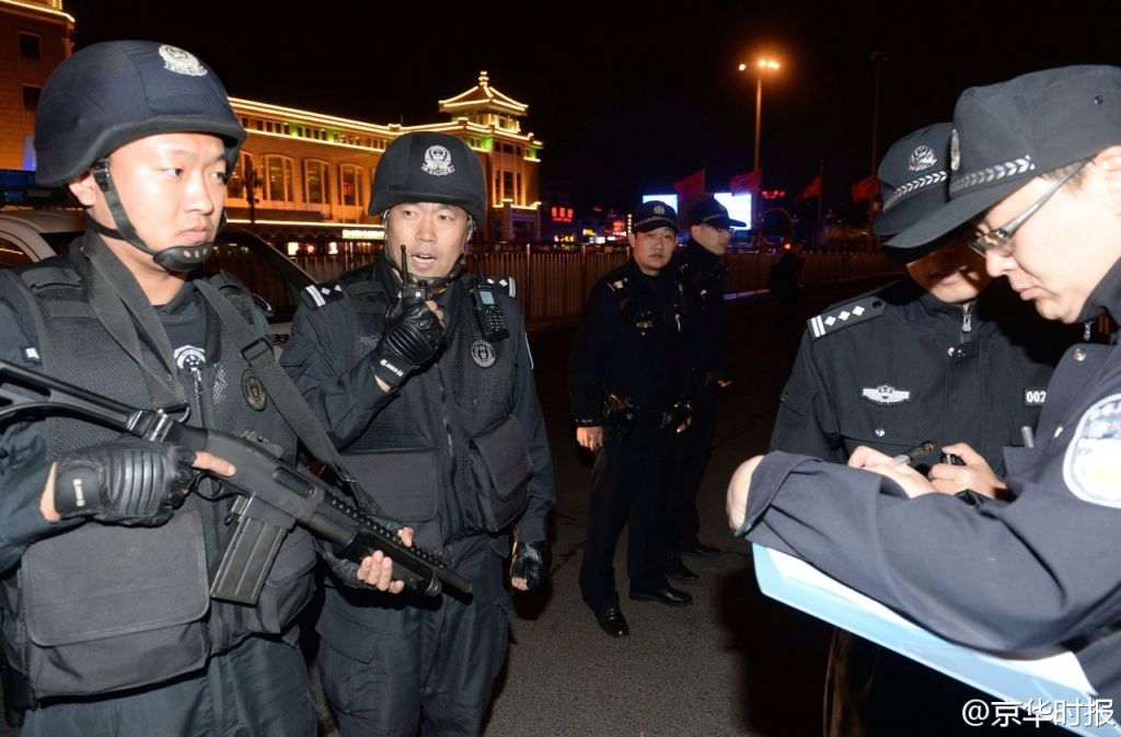 与此同时,北京警方在现场设立了临时指挥部,指挥官已等候在指定位置。掐时计算各警种到达时间。50秒后,正在广场执勤的属地分局执勤警力首先到达指定地点。