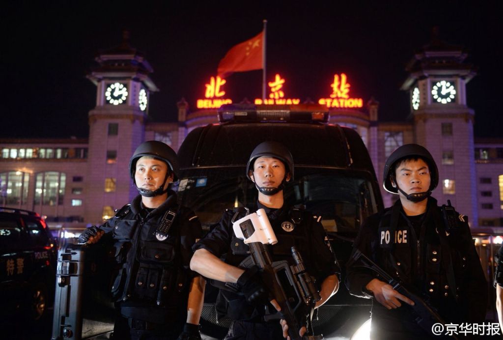 京华时报讯 (记者周鑫) 5月1日,北京市公安局在北京火车站组织开展了贴近实战的反恐处突拉动演练。