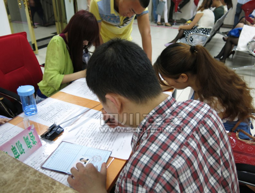 在整个登记大厅记者看到,无论是申请咨询、还是婚前体检、还是照相复印,年轻情侣们都排起了长队在等待,整个婚姻登记大厅再一次“爆棚”。户口在江阳区的刘女士告诉记者:“今天早上8点就来了,就是为了赶这个好日子,‘2014520’也不是很容易的等到的,我和我男朋友认识两年了,也觉得可以结婚了,感觉很兴奋、很幸福!”刘女士的准丈夫为了配合这个幸福的时刻,还特意送上了一大束红玫瑰,刘女士手捧着鲜花,拿着刚刚领到的结婚证,激动地说不出话来。