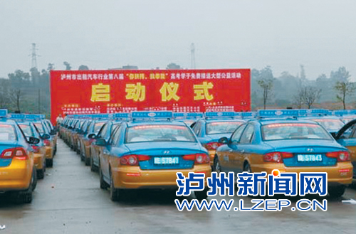 从2005年至今,泸州市共计1400余辆出租车参与爱心活动,免费接送高考考生3.3万人次