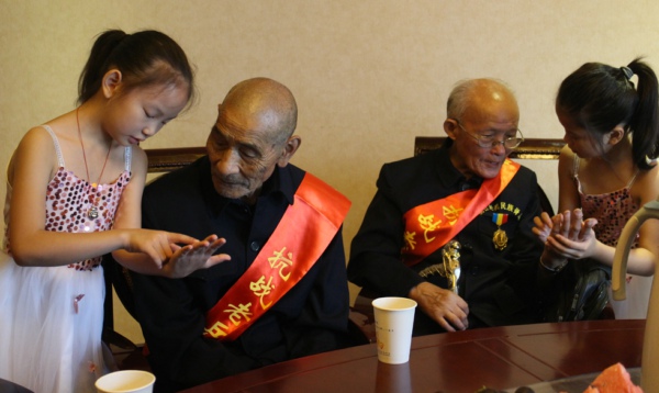 抗战老兵与志愿者合影