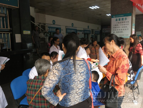 今日上午,为了让泸州广大的疼痛患者得到更多关注,泸州医学院附属医院在门诊部一楼举行了义诊活动。泸医附院疼痛科的大部分医护人员都来到义诊现场,为患者义诊。上午8时,记者看到,义诊处就排起了长龙,大部分来接受义诊的人都是中年人和老年人,而其中他们很多都是风湿关节病的患者,常年受到疼痛的困扰。