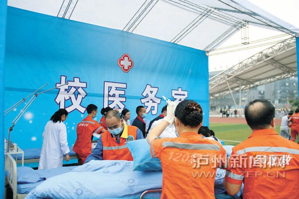 昨日上午,泸州老窖天府中学校园内人头攒动,百余名医护人员、百余名警务人员都在现场,紧张的氛围中,3辆救护车急速驶来……这里发生了什么事?原来,是我市举行的食品安全事故应急演练。