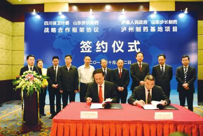 昨日,山东步长制药与泸县人民政府在成都正式签约,将在泸州建制药基地。据了解,该项目占地616亩,位于泸州高新区医药产业园,拟投资40亿元建设生物制药及新药产业化基地。项目建成后可以带动年产值150亿元,年入库税金不低于15亿元。步长集团2013年全国医药行业排名第八位,入驻泸州后将会带来一大批生物医药企业投资入驻发展,对于加快泸州医药产业发展具有重要推动作用。