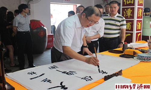 勾调定样结束的总结会上,中国食品协会秘书长马勇对潭酒近年的长足发展给予高度评价,特别对年份酒“双标注”的举措给予肯定,同时希望仙潭酒业集团多向专家们学习,密切与媒体的合作,邀请酿造、制曲、勾调等技术人员来共同参与,将双标注年份潭酒活动设计得更完美,并坚持下去。马勇最后为本届年份酒活动挥毫题字:天生一杯仙潭酒, 香飘古蔺醉泸州。这无疑是对潭酒的一种肯定,也是一种激励。潭酒人将这些话早已牢记于心,并融入到自己的行动中,用时间去沉淀和酝酿属于自己的潭酒文化。