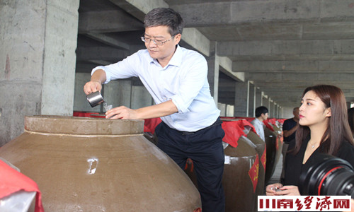 上午9:00许,在仙潭集团董事长方久伦的陪同下,当地人大、政府领导、白酒专家等先后参观了酿酒车间,千坛库、白酒调酒室等。