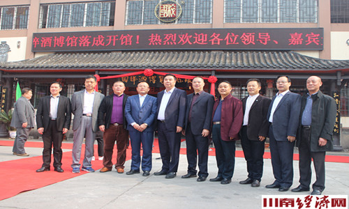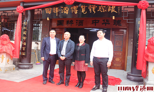 在一片热烈祥和的气氛中,泸州市人大常委会副主任蒲俐、龙马潭区人大常委会主任吴文涛、四川环球佳酿张家豪总经理、国粹酒业公司执行董事张家豪、泸州国粹酒业有限公司总经理涂国友共同为国粹.酒博馆揭牌。