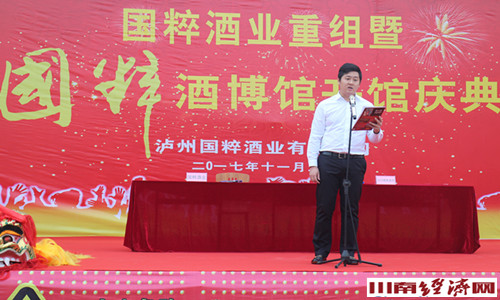 泸州国粹酒业有限公司总经理涂国友先生在庆典仪式上致辞,介绍了公司资产重组及战略规划。他说国粹公司自2004年组建以来,始终坚持传承宏扬中华民族传统文化精神,企业从无到有、从小到大、从弱到强,通过十余年的发展和国粹人努力的拼博,国粹品牌先后荣获了中华文化名酒、中国驰名商标,2010年上海世博会国粹文化金奖、四川名牌四川著名商标、川酒“新六朵”金花等称号。同时,国粹酒业公司还先后被誉为中国泸州酒原产地地理保护产品、中国生态原产地保护产品、四川省“守合同、重信用”企业、泸州市首批酒类“小巨人”企业、泸州龙马潭区纳税大户、泸州出口创汇企业、龙马潭区先进党支部等称号。他说,今天国粹酒业又迎来了成都环球世纪会展旅游集团公司旗下——环球佳酿酒业有限公司的合作,并成功资产重组,成为了紧密的合作伙伴。重组后的泸州国粹酒业公司,增强了综合实力,将充分利用环球佳酿的超大平台,雄厚的实力及环球佳酿战略合作伙伴,四川1919酒类直供庞大的线上、线下销售网络和新型的商业模式,坚持“酿好酒、卖好酒”。 未来的国粹将秉承让世界沉醉的理念,计划5年内销售收入实现15个亿,税利实现2个亿,品牌覆盖全国,乃至世界。让国粹成为又一个家喻户晓的名酒。重组后的国粹酒业将不忘初心,坚持传承宏扬中华民族传统文化和传统的酿酒工艺。以优异的业绩,感恩朋友、回报社会,相信国粹的明天会更加美好。