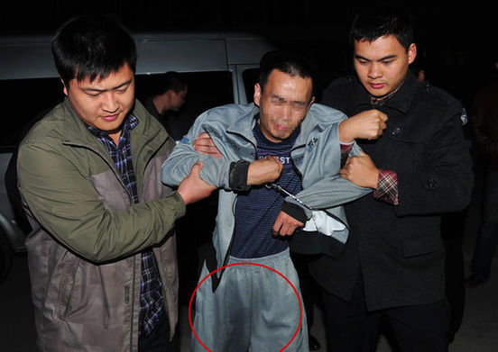 6名嫌犯“劫狱”未成,被民警抓获押往审讯室。