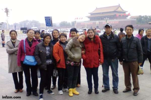 上访经历并非全部是灰色的。偶尔,他们也会以游客的身份,结伴去北京一些免费的旅游景点转转。这是他们仅有的快乐时光。11月9日上午,巩进军张罗来自鹤壁的“访友”一行11人去天安门广场玩。他们在广场东侧合影留念。照片上的每一个人都流露着难以抑制的笑容。