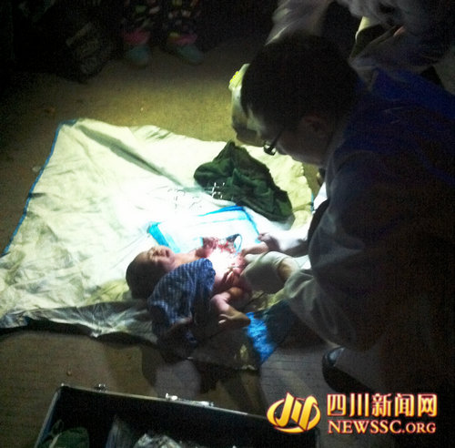 十来分钟后救护车赶到,由于气温还低,婴儿的脐带还连接着,必须先简单救助。这时地上铺上一个毯子就成为了手术台,众人尽量围成一个圈,减少寒风的伤害,纷纷拿出手机,电筒就成为了手术灯,协助医生完成简单救助与护理,看见母子平安的离去,大家才松了一口气。