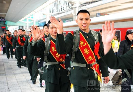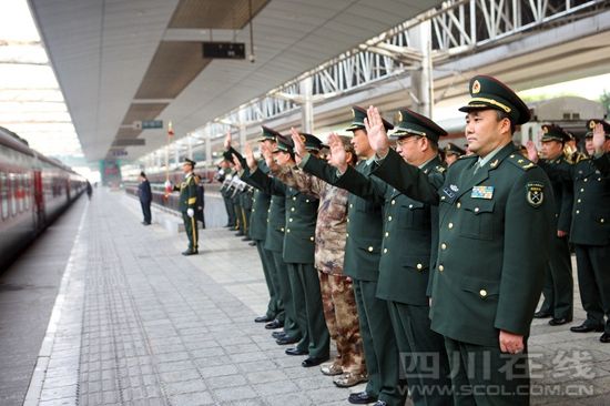四川在线讯(特约记者高效文摄)12月2日下午,“5·12”全国抗震救灾模范、13集团军军长王凯率领集团军常委来到重庆火车站,为与自己在抗冰保雪、抗震救灾、抗洪抢险中并肩战斗的退伍老兵送行。