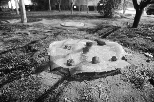 北京晨报记者按网友提供的线索,在丽都广场南门西侧的路边草坪找到了这口井,井盖上盖着纸板、薄膜,并用石头压住,井盖正中间写着一个“暖”字。不远处的铁栅栏上,搭着一床蓝色被子,还有一些袜子、泡沫纸等物品。“这下面住着一个老头和一个老太太,这些东西就是他们晾的。”在附近打扫落叶的张先生告诉记者,两位老人近70岁,在此居住已有五六年,白天外出乞讨,晚上回来居住。“听说他们还有两个儿子,前段时间有个儿子来过,在附近卖伞,后来就没见到过,估计回老家了。”