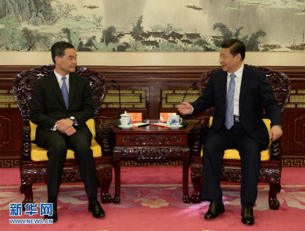 习近平说,你和特区政府认真贯彻稳中求变、民生为先的施政方针,着力解决经济社会发展中存在的突出问题,取得了初步成效。中央政府对你和特区政府的工作是充分肯定的。